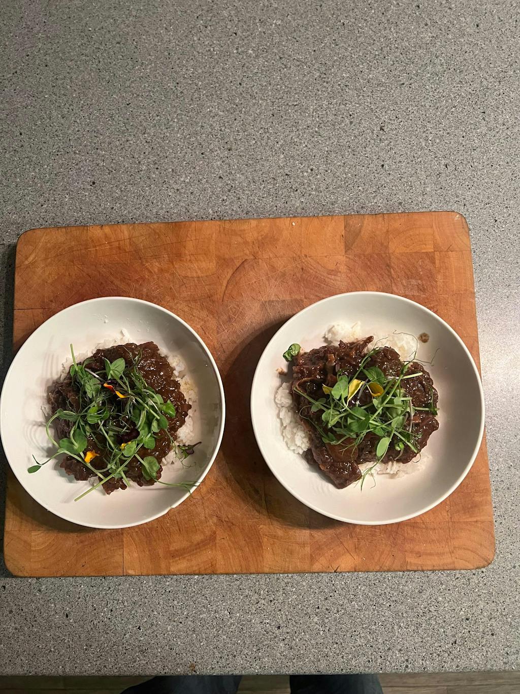 With Asian fusion flavours, sweet and spicy, beef ribs are rich and melt off the bone. Add some hot sauce at the end if you like a bit more a kick, or else perfect for kids and grownups alike.